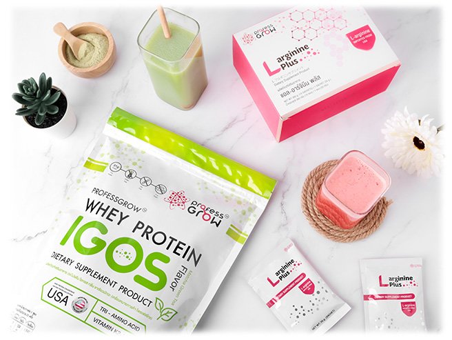 Whey IGOS มีส่วนผสมของ กรดอะมิโนจำเป็น 3 ชนิด (Tri-Amino) : L-arginine, L-lysine, L-ornithine ช่วยในการกระตุ้นการเจริญเติบโต
