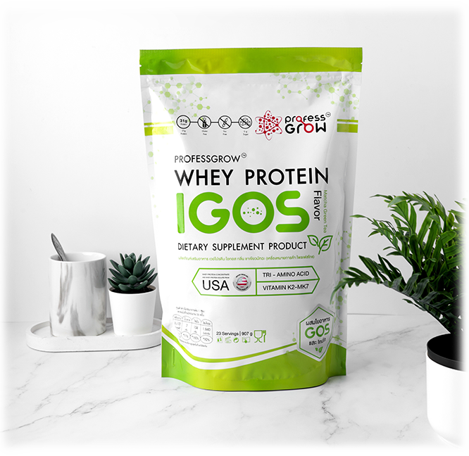 Whey IGOS มีใยอาหาร GOScและlcFOS ช่วยเสริมการดูดซึมสารอาหาร แร่ธาตุต่างๆ แมกนีเซียมและแคลเซียม ช่วยเพิ่มภูมิคุ้มกัน