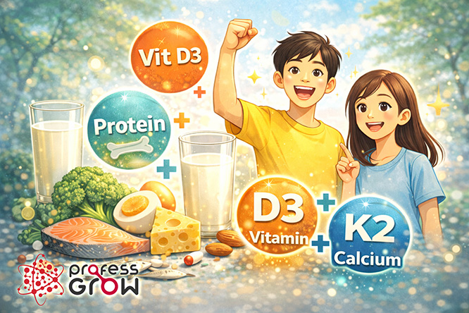 แคลเซียม + วิตามินดี → เสริมสร้างกระดูกให้ยาวและแข็งแรง